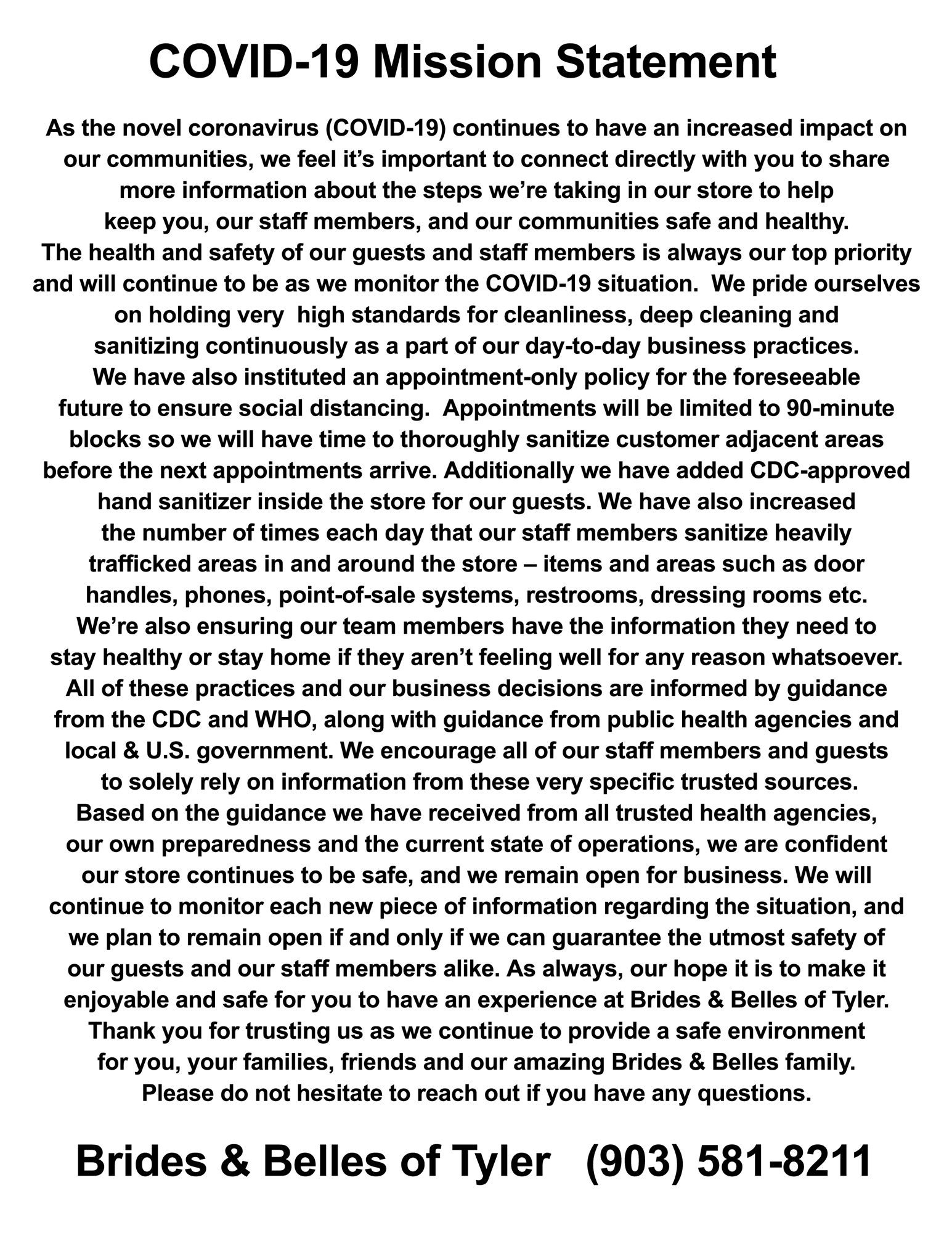 | We Are Now Open With Regular Hours And Will Be Operating By Appointment Only During The Covid-19 Situation |
